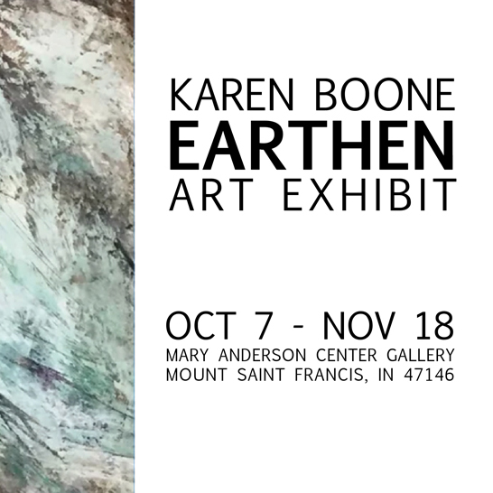 Opening Reception Join us Friday, October 7th, 2022, for the opening reception for Karen Boone’s Earthen art exhibit in the Mary Anderson Center at Mount Saint Francis. Date: October 7th,…