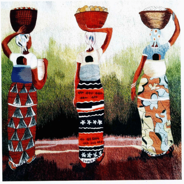 From an initial gathering of nearly one hundred interested women, Christiane selected a small group of the most skilled artisans and trained them in a distinctive, collaborative approach to embroidery. In Rutongo, the group developed the techniques and visual language that now define the Pax Rwanda collection—works that would ultimately be recognized at the national level and exhibited in Rwanda’s National Art Gallery.